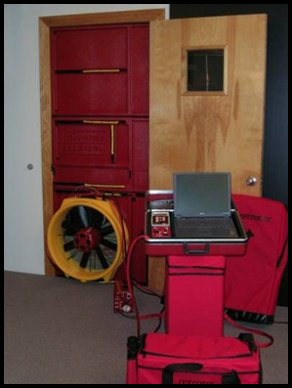 Because of its nature, a Door Fan Test will always calculate the worse case leakage for the room. It draws air through leaks in the room and under the floor as well as above the suspended ceiling to predict the descending interface of the suppression agent. The length of time it takes for the descending interface to reach the minimum protected height identifies the concentration hold time.